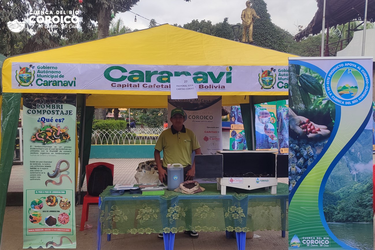 Cáritas Coroico estuvo presente con el proyecto “Mi Casa, Mi Cuenca”, con el stand de lombricultura , donde enseño la transformar residuos orgánicos en abono natural haci tener una alternativa que contribuye a la producción agrícola sostenible y proteger los suelos y fuentes de agua locales. La presencia de Cáritas resaltó la importancia del trabajo conjunto entre organizaciones, comunidades y jóvenes para fomentar hábitos responsables con el medio ambiente.